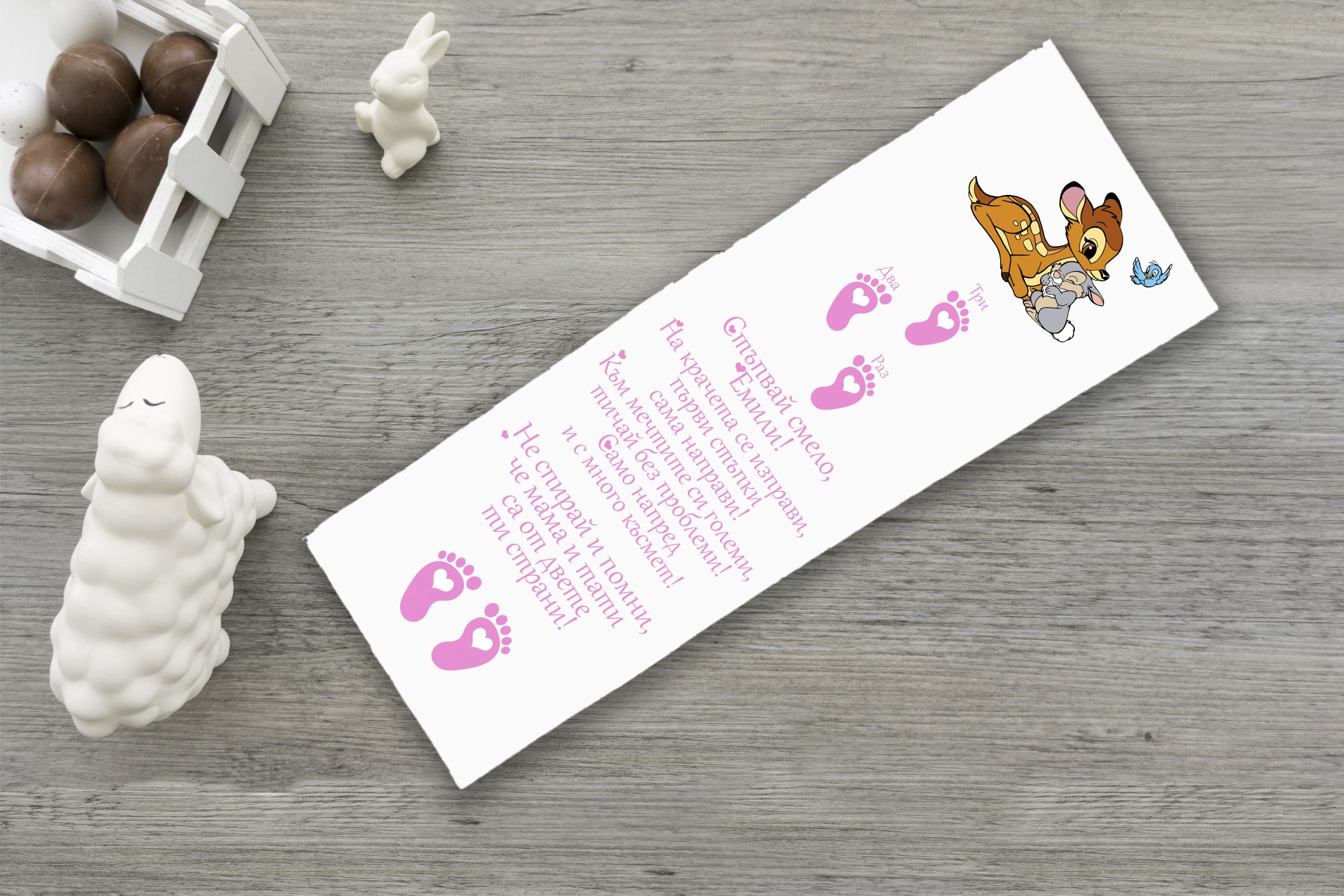 С любов към най-малките дечица и с грижа към моментите, които оставят спомен за цял живот, създадохме серия „Тематични бебешки артикули” с персонализация! В раздела ще откриете две категории „Пътечки за прощъпулник”.