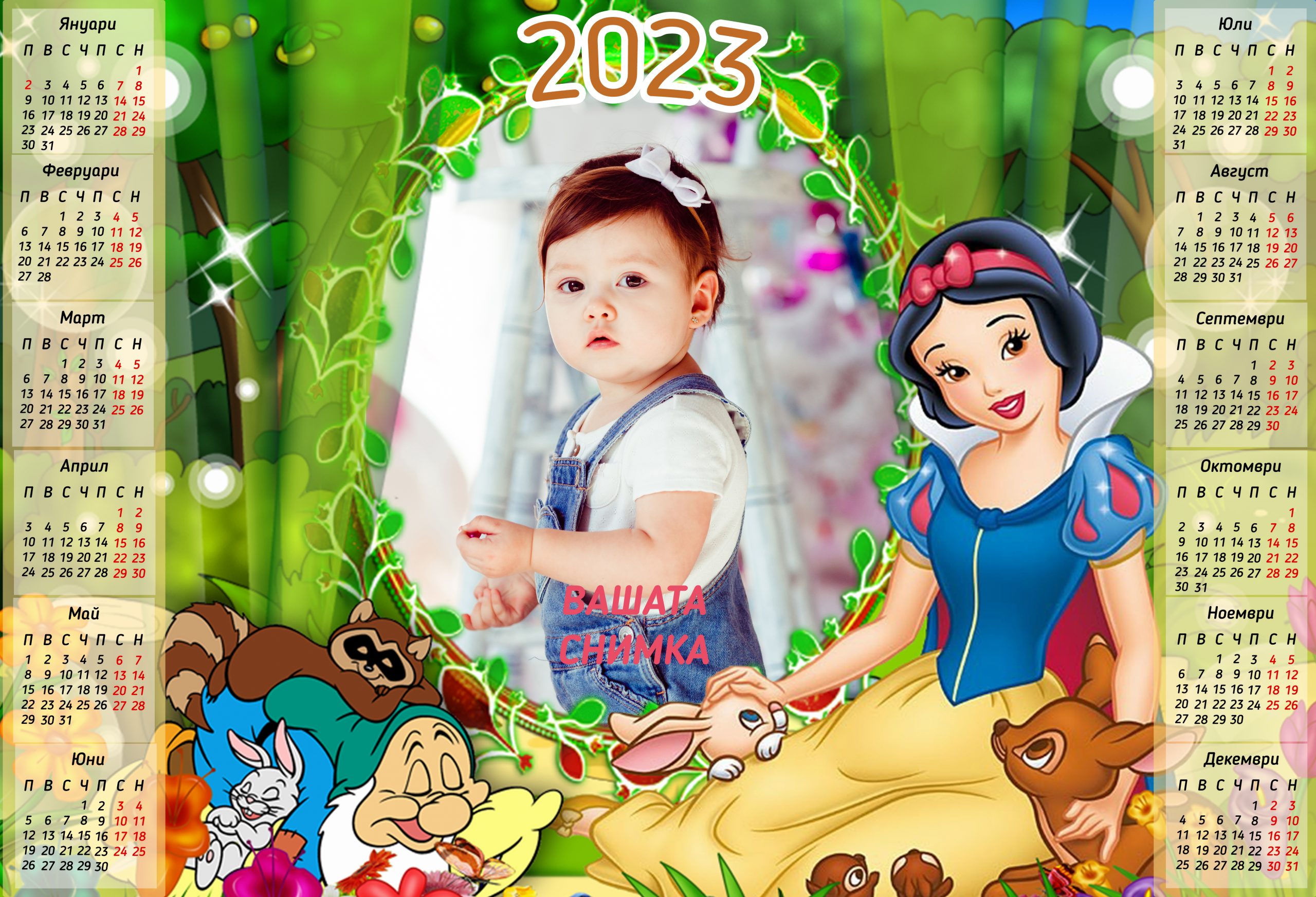 Еднолистов календар за 2023 г. Директно се отпечатва при предоставяне на снимка от ваша страна.