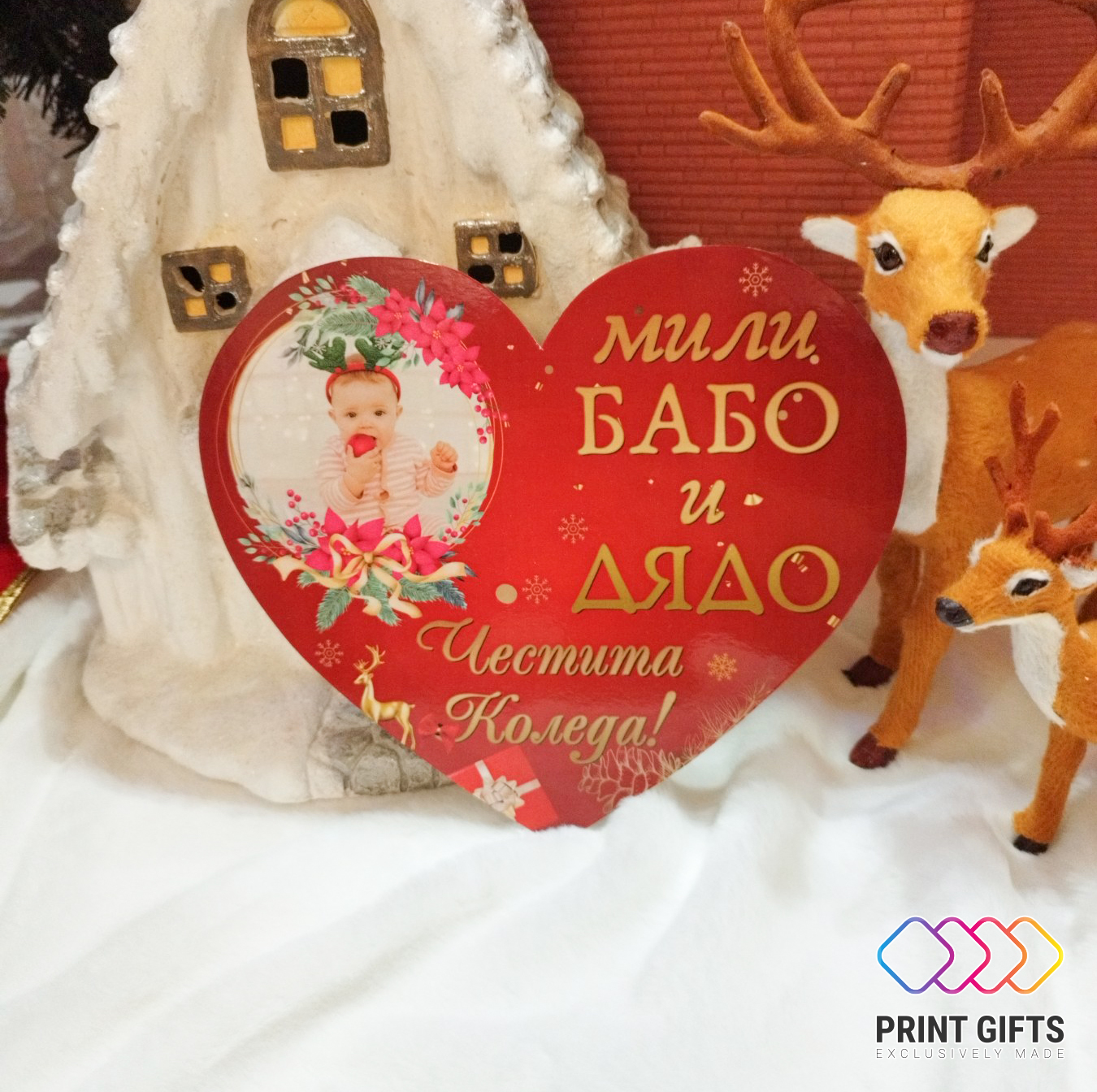 Пвц рамка под формата на сърце с послание и ваша снимка. Надписите могат да бъдат променяни. Ако желаете да го направим ни напишете надписа, който искате в полето “Допълнителна информация към поръчка”, което ще ви излезе в последната стъпка преди приключване на поръчката. Снимката може да прикачите също преди приключване на поръчката. На гърба може да поставим магнит или двойнолепяща лента, за да се закачи на стена.