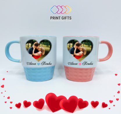 Комплект Цветни керамични чаши за двама. Чашите са с печат от двете страни.